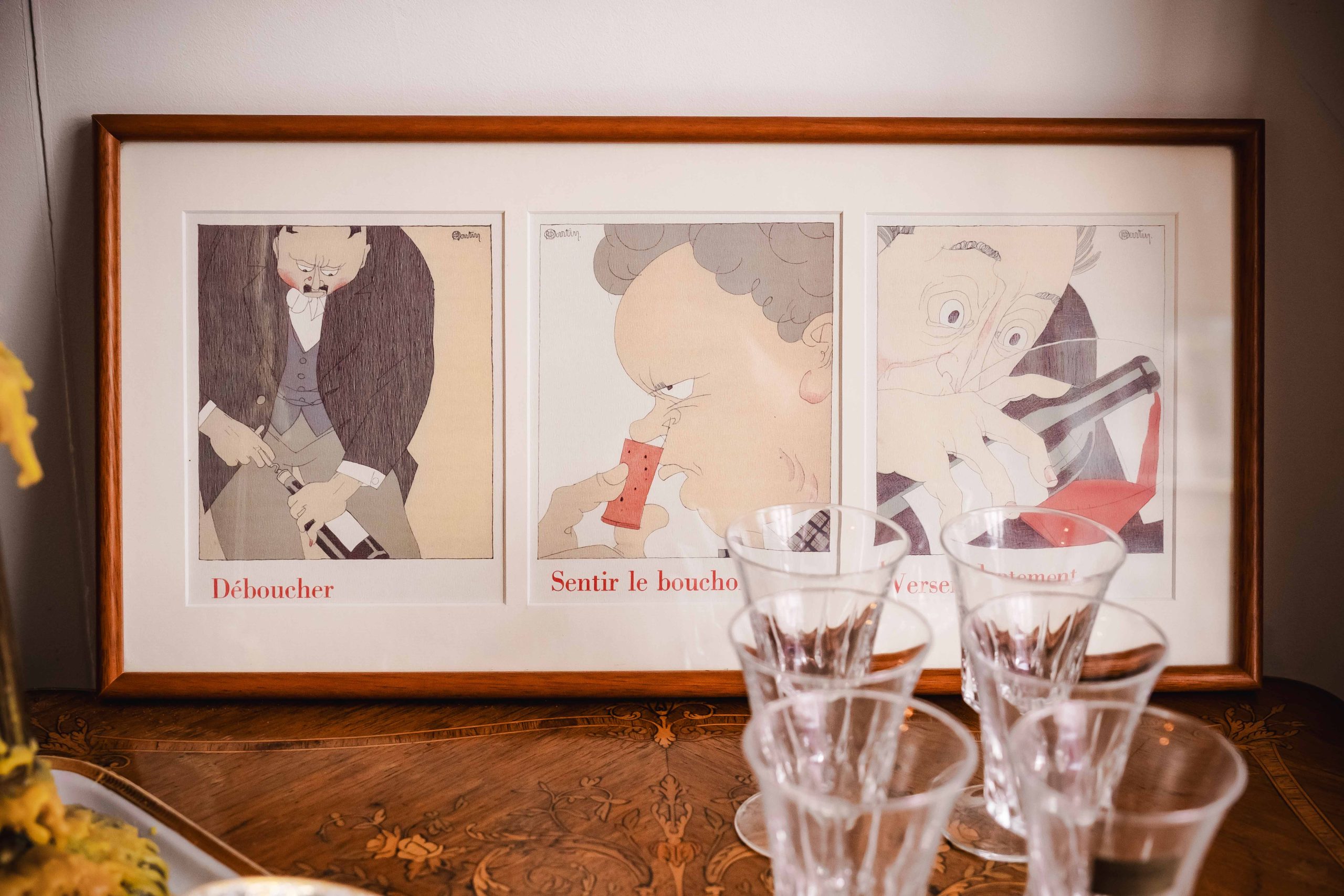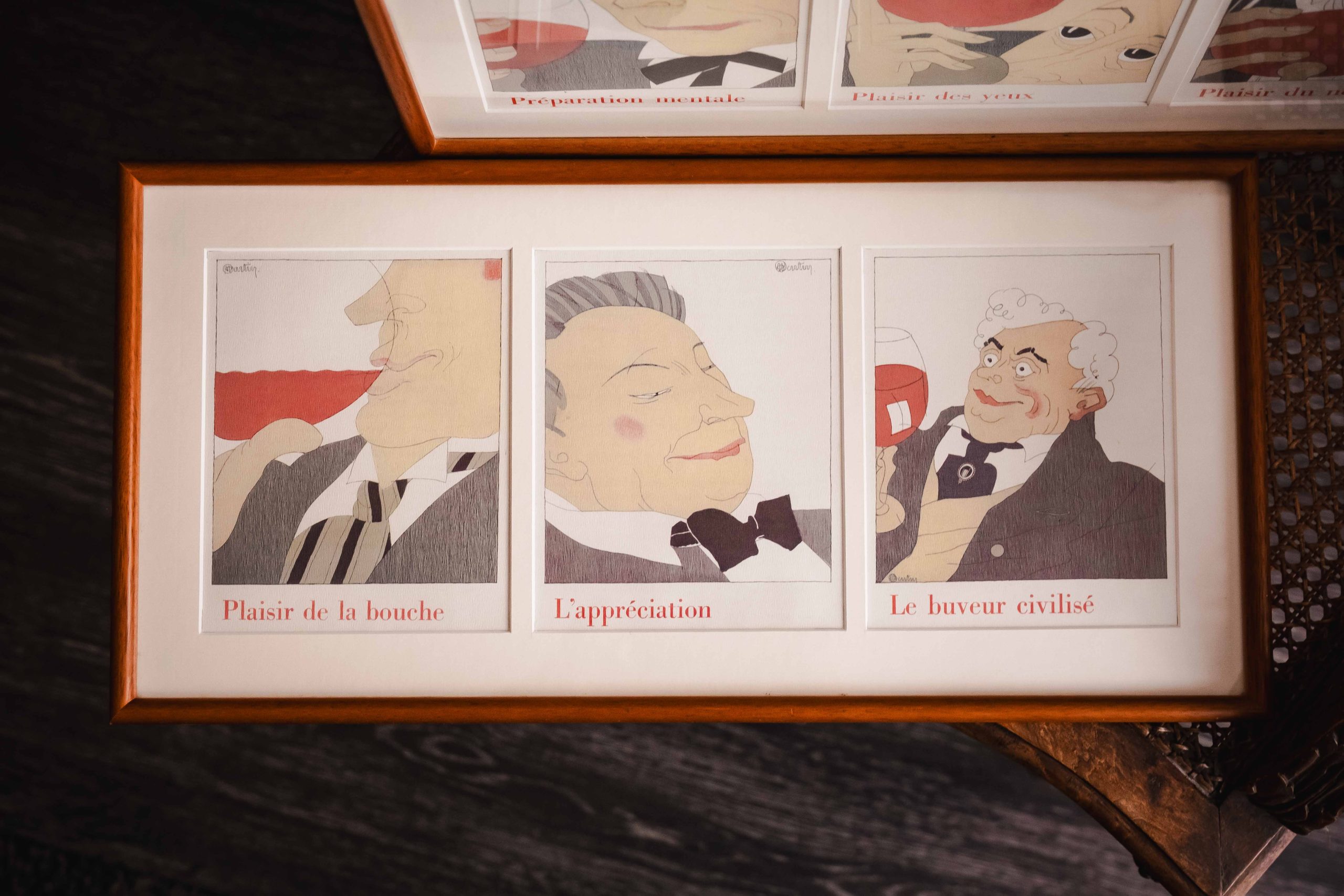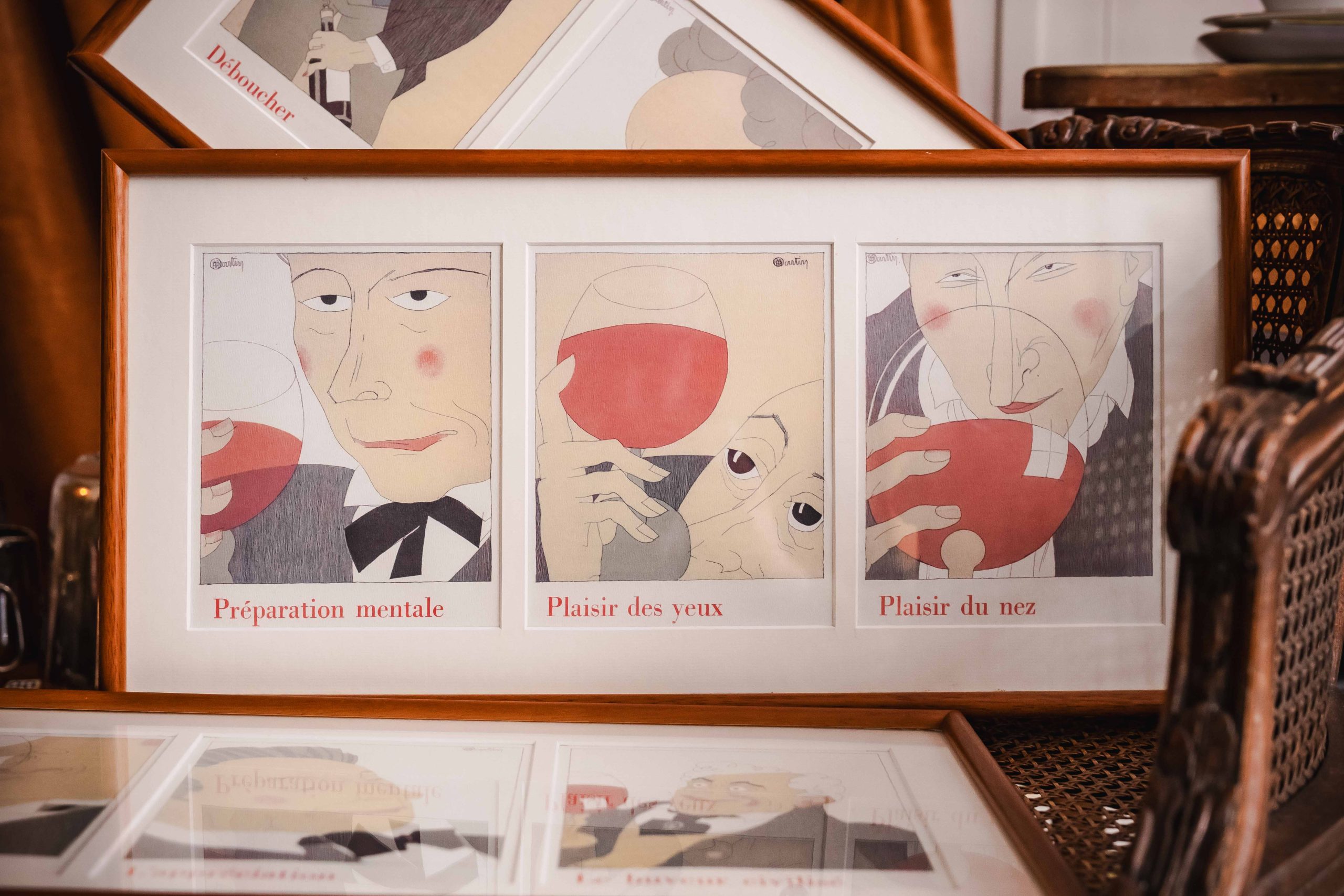 Composed of 3 framed works bringing together 9 illustrated scenes, this set celebrates the small rituals of wine tasting with humour, refinement, and unmistakable French charm.